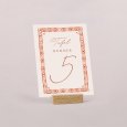 Plaats het tafelnummerkaartje in het midden van de tafel zodat het goed zichtbaar is voor jullie gasten. Zo vinden ze snel hun plek na het aflezen van hun tafelnummer op het tafelplan.