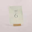 Plaats het tafelnummerkaartje in het midden van de tafel zodat het goed zichtbaar is voor jullie gasten. Zo vinden ze snel hun plek na het aflezen van hun tafelnummer op het tafelplan.