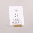 Plaats het tafelnummerkaartje in het midden van de tafel zodat het goed zichtbaar is voor jullie gasten. Zo vinden ze snel hun plek na het aflezen van hun tafelnummer op het tafelplan.