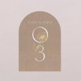 Geplaatst in het midden van elke tafel, zal dit tafelnummer in de vorm van een boog je gasten helpen hun ereplaats voor de avond te vinden.