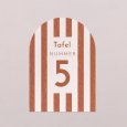 Geplaatst in het midden van elke tafel, zal dit tafelnummer in de vorm van een boog je gasten helpen hun ereplaats voor de avond te vinden.
