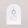 Geplaatst in het midden van elke tafel, zal dit tafelnummer in de vorm van een boog je gasten helpen hun ereplaats voor de avond te vinden.