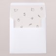 Met de doopkaart Plechtigheid I worden symbooltjes als een kerkje, vis, vredesduif en olijftakje op een speelse manier weergegeven met ludieke lijntekeningen. Een mooie uitnodiging voor het samenzijn rond het doopsel van je kind.