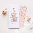 Een groot carrousel staat centraal op het doopkaartje My Sweet Carrousel. Een stoet van dieren in zachte aquareltinten siert deze nostalgische en tegelijk originele creatie vol tederheid – ideaal om de doop van uw kleine meisje of jongen met warme woorden aan te kondigen.