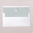 Deze opgetoge bende duifjes fladderen heugelijk rond, helemaal klaar voor het bijstaan van het bijzondere moment van het doop, communie of lentefeest! Gebaad in zachtgroene kleuren, geeft deze uitnodiging Vrije Vlucht II een poëtische tint aan deze plechtige kaart.