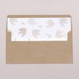 Wanneer het wel wat moderner en hedendaagser mag, is deze trendy doopkaart zeker iets voor jou! Speelse illustraties van vredesduifjes in zachte kleuren versmelten met de witte achtergrond tot een harmonisch geheel. Met het opvallende contrast tussen crème wit en kraft, zal deze prachtige uitnodiging voor het doopfeest zeker alle aandacht trekken.