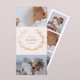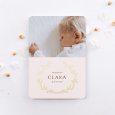 Olijftakken in goudfolie sieren de naam van je dochter of zoon. Samen met een foto en zachte kleuren, kondigt de doopkaart Octavia elegant het aanstaande doopfeest aan. Een mooie uitnodiging voor? familie en vrienden voor het vieren van dit plechtige moment, de doop van je kindje.