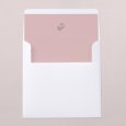 Deze doopuitnodiging wordt gepresenteerd als een gevouwen vierkante kaart, gevouwen in het midden. Twee perforaties aan de voorkant van de kaart maken het mogelijk om een steeltje gedroogde bloemen door te steken (optioneel en tegen meerprijs).